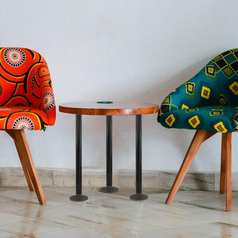 The simple industrial design complements the traditional and modern decorations.